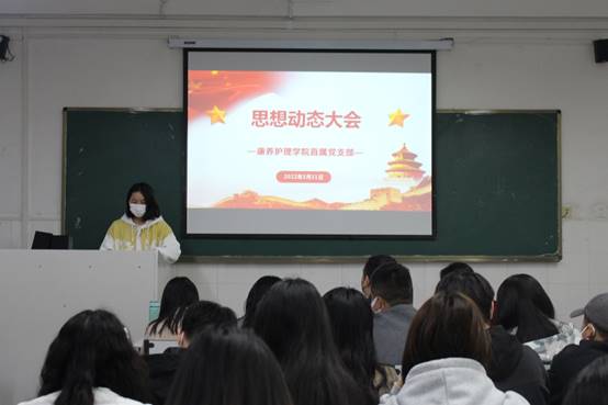 437必赢会员中心党总支于2022年3月21日晚,在成都校区(东区)421、422教室召开了2019级本科护理学(专升本)专业学生思想动态交流座谈会。437必赢会员中心党总支副书记陈雯出席会议,各班辅导员教室、班长及团支书参加会议。