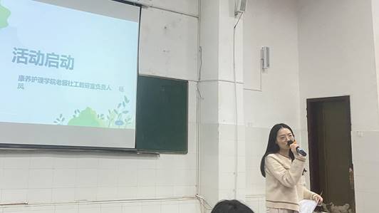 陈雯为本次活动致辞,她提到本届国际社工日的主题寓意和社会工作对社会的重要意义,也表达对本次社工案例分析大赛满满的期待与美好的祝愿。2017级老年服务与管理专业毕业生、龙湖椿山万树养老服务中心社工唐柯桦也来到现场分享他的行业经历、校园经历与工作感受。他以亲身经历嘱咐同学们要注重培养综合能力、调节脾气性格、聚焦能力提升,鼓起了社工学子希望之帆。