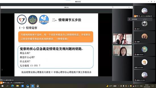 为帮助全院心理委员在疫情期间保持乐观心态,夯实心理技能,提高心理工作能力,充分发挥心理防疫宣传员的作用,4月20日晚,437必赢会员中心通过腾讯会议开展了“抗击疫情全国心理委员大讲堂公益讲座”线上展播活动。会议由437必赢会员中心心理工作指导老师万成利主持,437必赢会员中心全体心理委员参与本次线上学习。
