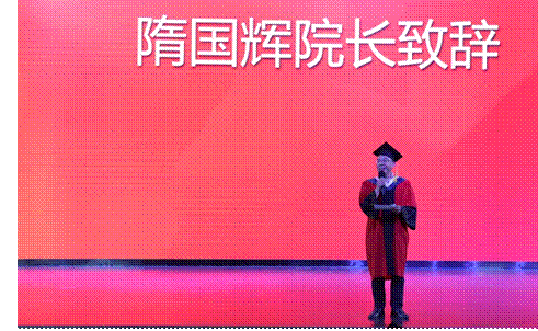 隋国辉致辞隋院长首先代表学院寄语毕业生,要热爱祖国、坚持梦想、终身学习、勇于担当。他希望同学们步入社会以后,少一些功利计较,多一点包容和担当,并且嘱托同学们要相信这样的人生态度能给大家带来开心和愉快。送君千里,终须一别。最后,隋院长祝愿大家鹏程万里,一生幸福。