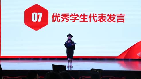 2022届本专科优秀毕业生代表代表全体毕业生发言,她们表示要牢记师长的尊尊教诲,感恩母校的教育培养,怀着一颗炽热的心将所学的知识运用到无限的为人民服务中去,在行业中发光发热,为实现中华民族伟大复兴的中国梦努力奋斗。