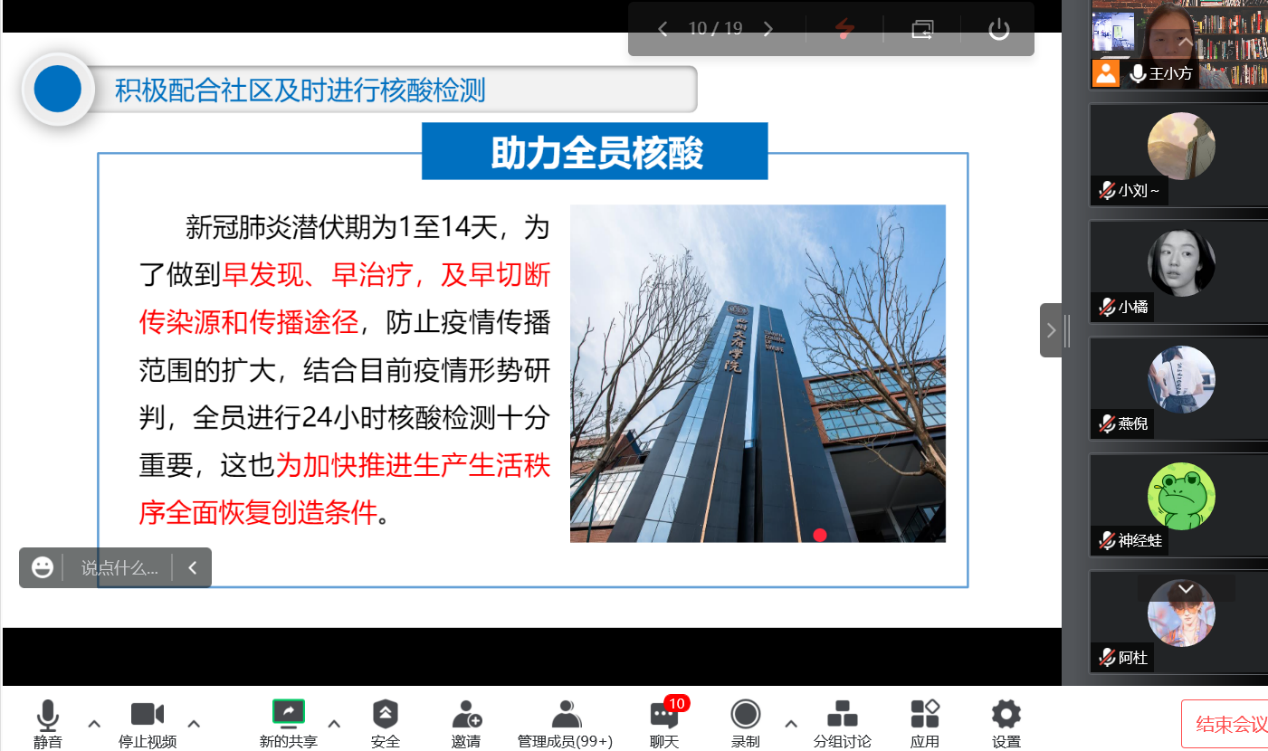 学院通过本次主题班会的召开,让同学们更加清醒地认识到目前的疫情防控形势,了解了疫情防控的相关知识,也有益于树立疫情下同学们的责任意识,鼓舞了大家携手战胜疫情的的决心。愿疫情早日结束,期待校园相见!