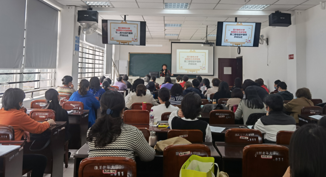 2022年3月9日,437必赢会员中心与四川老年大学合作开展的第四期养老护理师培训班正式开班。