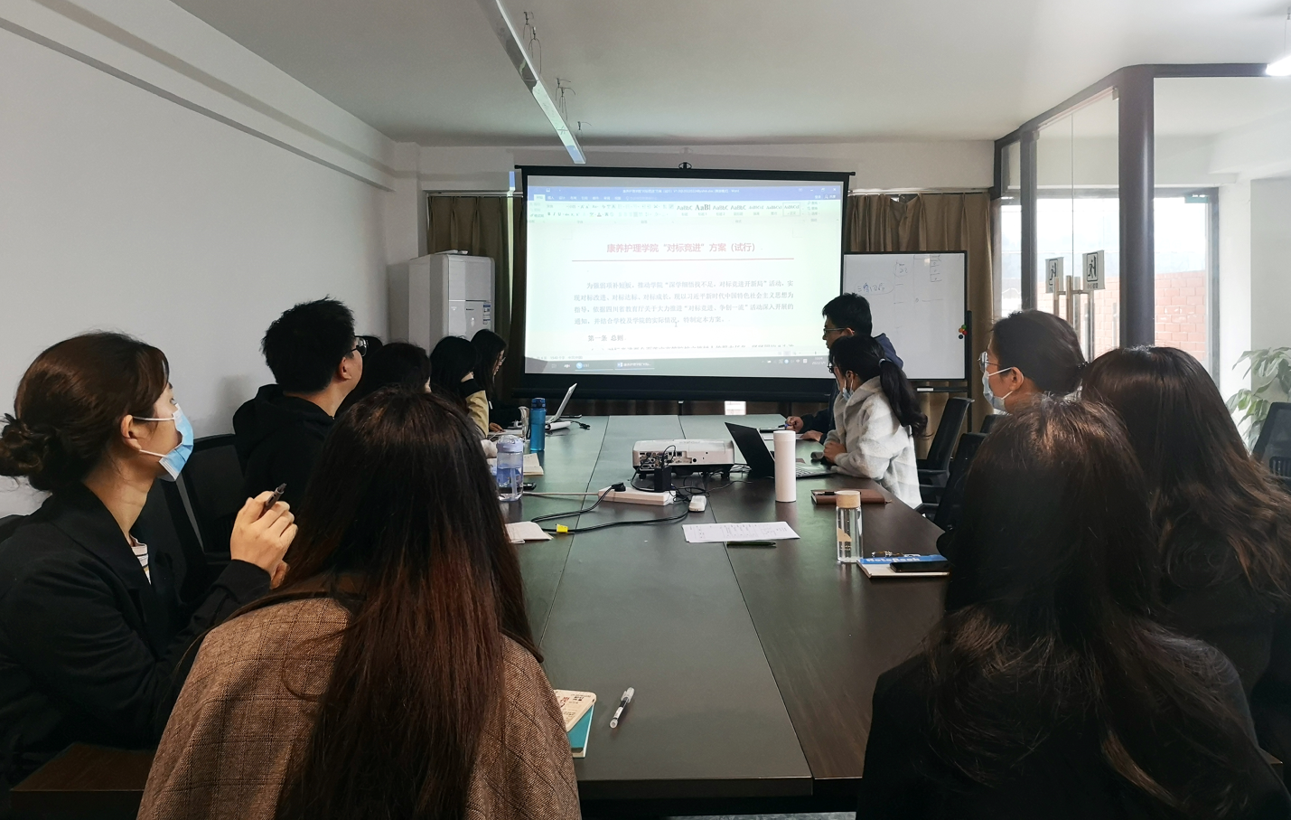 为传达落实四川省教育厅关于大力推进“对标竞进、争创一流”的会议精神,2022年3月9日,老年服务与社会工作教研室在成都西区负一楼会议室召开“对标竞进”解读会议。