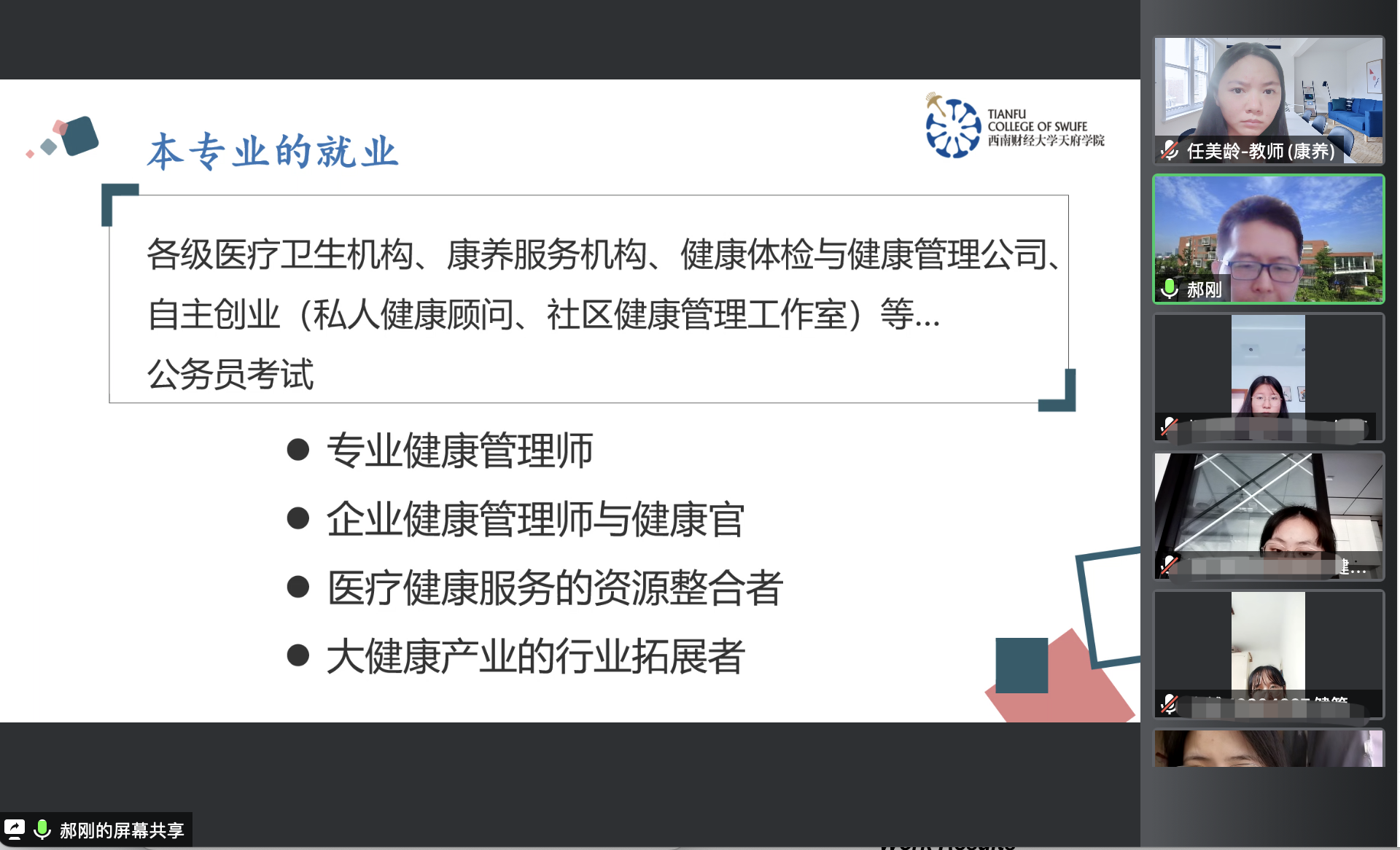 为帮助新生更好地了解所学专业,提升专业认同感,明确专业内涵及目标。9月6日上午9点,基础医学教研室举办了2022级健康服务与管理专业新生专业认知讲座。讲座由班导师任美龄主持,专业负责人郝刚主讲,全体新生参加。受疫情的影响,本次讲座通过腾讯会议在线召开。郝刚进行线上专业认知讲座 讲座开始,郝刚从“大学是什么”引出学生思考与分享,从国家...